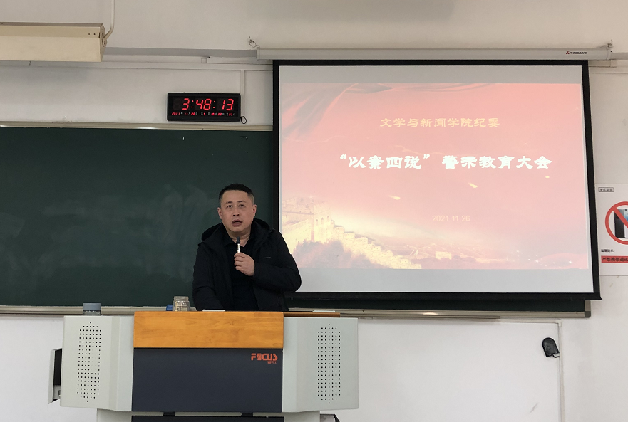 11月26日下午,文学与新闻公司全体教职工在慧智楼90625召开“以案四说”警示教育大会,会议由公司党委副书记、纪委书记程元元主持。