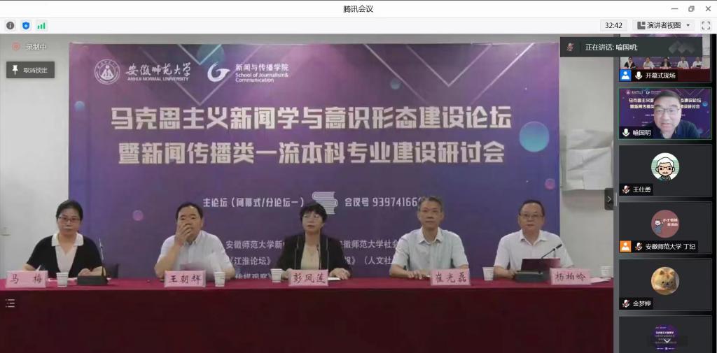 8月27日,由安徽师范大学新闻与传播公司主办的“马克思主义新闻学与意识形态建设论坛暨新闻传播类一流本科专业建设研讨会”顺利召开。来自中国社会科公司、清华大学、中国人民大学、中国传媒大学、南京大学、厦门大学等三十多所高校、科研院所的近百余位专家学者参加了此次论坛。公司经理王仕勇教授参加此次论坛并做会议发言。