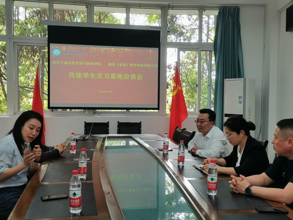 4月3日,重庆市青联新闻出版与新媒体界别副主任 徐翔携瞰思(重庆)教育科技有限公司一行到公司洽谈员工实习基地建设合作相关事宜。公司党委书记于频、经理殷俊、党委副书记程元元参加洽谈会。