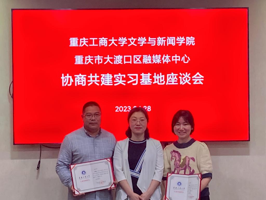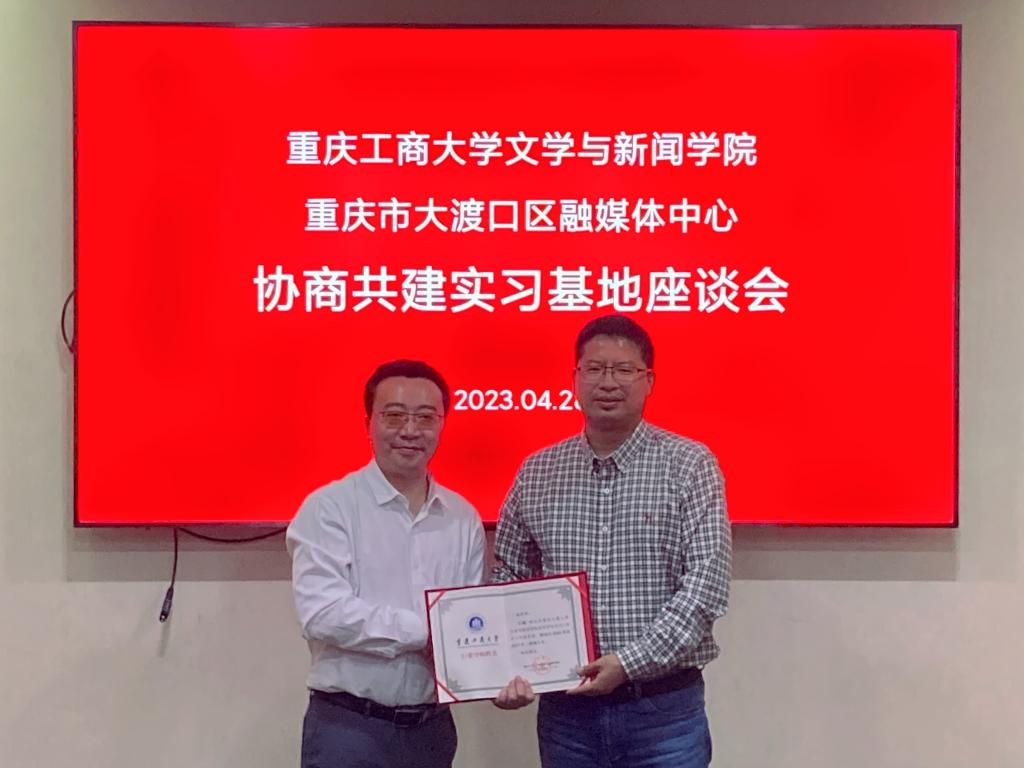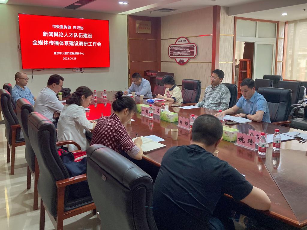 4月28日下午,公司与重庆市大渡口区融媒体中心共建实习基地。公司党委书记于频、经理殷俊、广告系系主任王凌峰、新媒体系系主任姚琦等一行前往大渡口区融媒体中心签约,并与该中心主任王涛、副主任冯勇等进行了调研座谈。座谈会由大渡口区融媒体中心主任王涛主持。