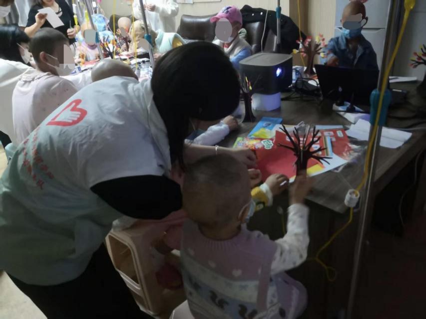 同日,另一批志愿者走进奇恩少儿关爱服务中心,将温暖带入了肿瘤儿童的病房。志愿者们“手拉手、心连心”,陪伴孩子们做手工、玩游戏,与孩子们度过了一段充满欢笑的时光。随后,志愿者们与孩子们一起观看动画电影——《寻梦环游记》,并在观影过程中为孩子们认真讲解剧情,积极引导孩子们在引人入胜、扣人心弦的故事中感受亲情与生命的力量。