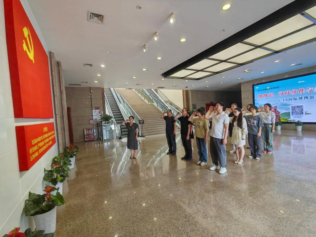 活动伊始,在专职组织员王欢的带领下,党员们一行在红岩革命纪念馆一楼,面向党旗,举起右手,庄严宣读入党誓词,以饱满的热情和昂扬的姿态展示了青年党员的朝气与活力,表达着为党的事业奋斗终生的决心与信念。