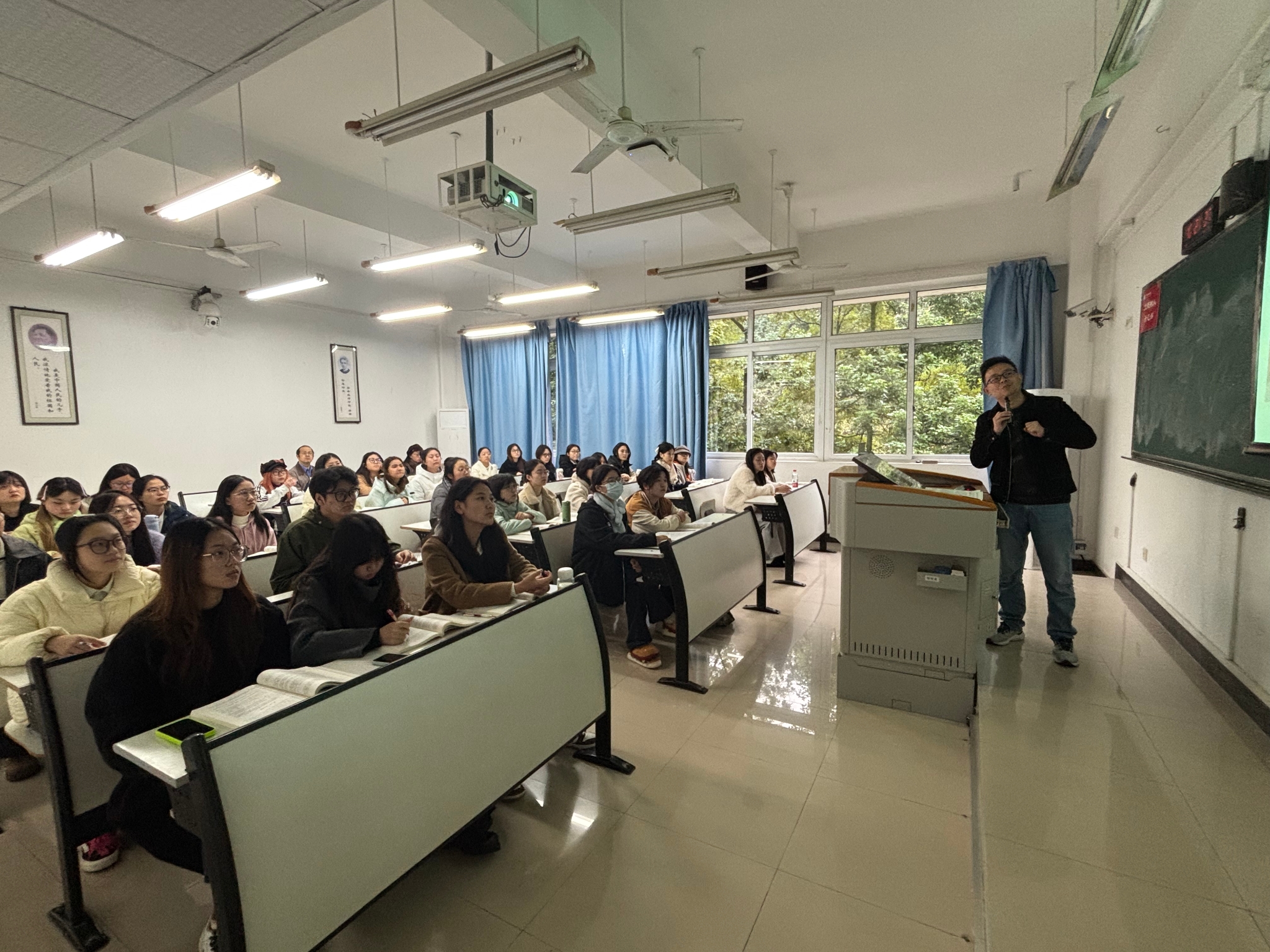 2025年11月19日,由广电系系主任谈华伟主讲的以本学期第二堂“立德树人”示范课在慧智楼90402教室进行。公司副经理郑笑眉、荣婷、教师代表邵茹波、朱洁到场观摩。
